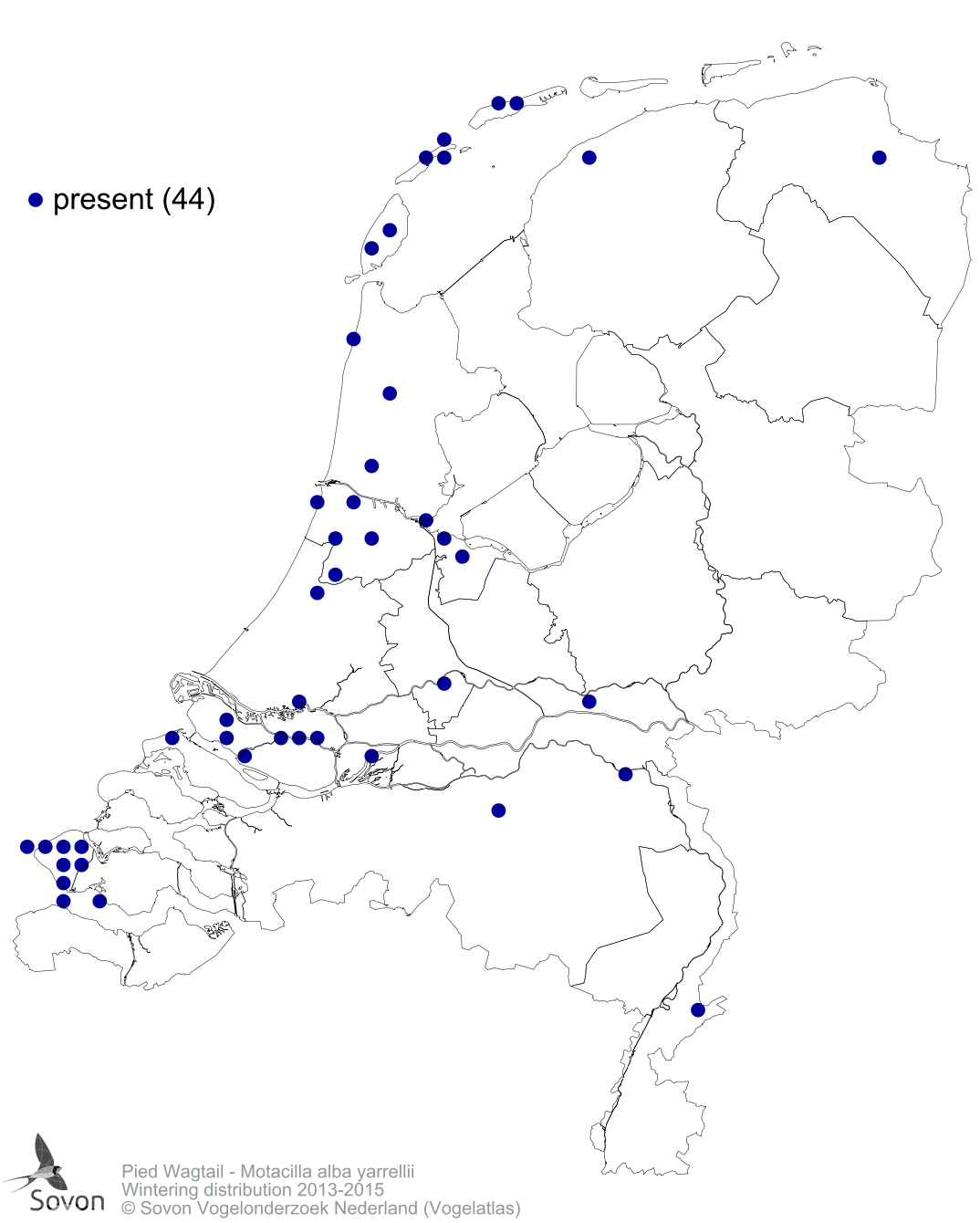 Numbers and distribution of breeding- and wintering birds in The Netherlands