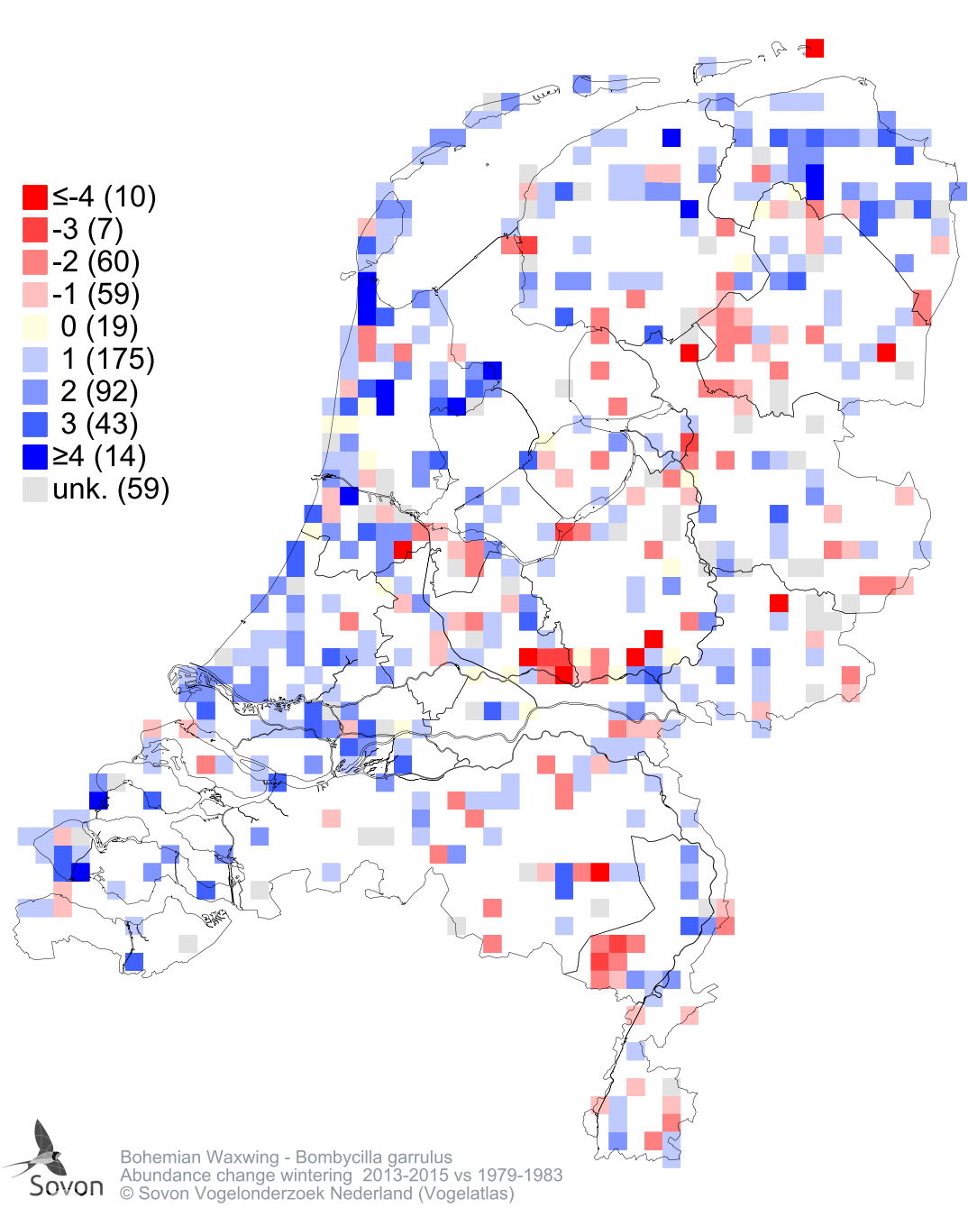 Abundance change wintering 2013-2015 vs 1979-1983