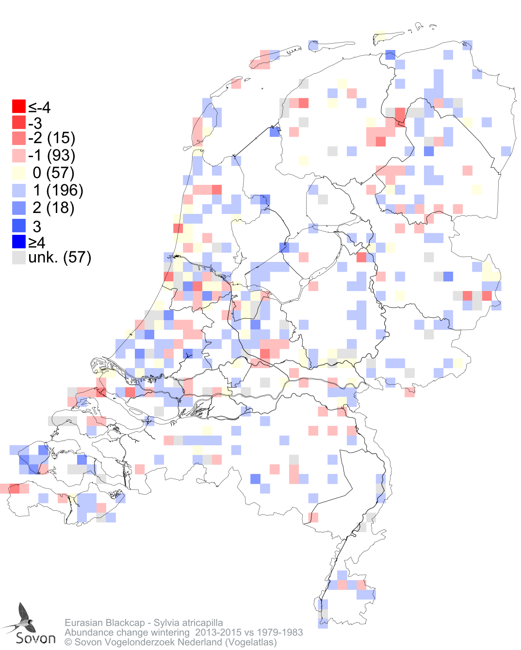 Abundance change wintering 2013-2015 vs 1979-1983