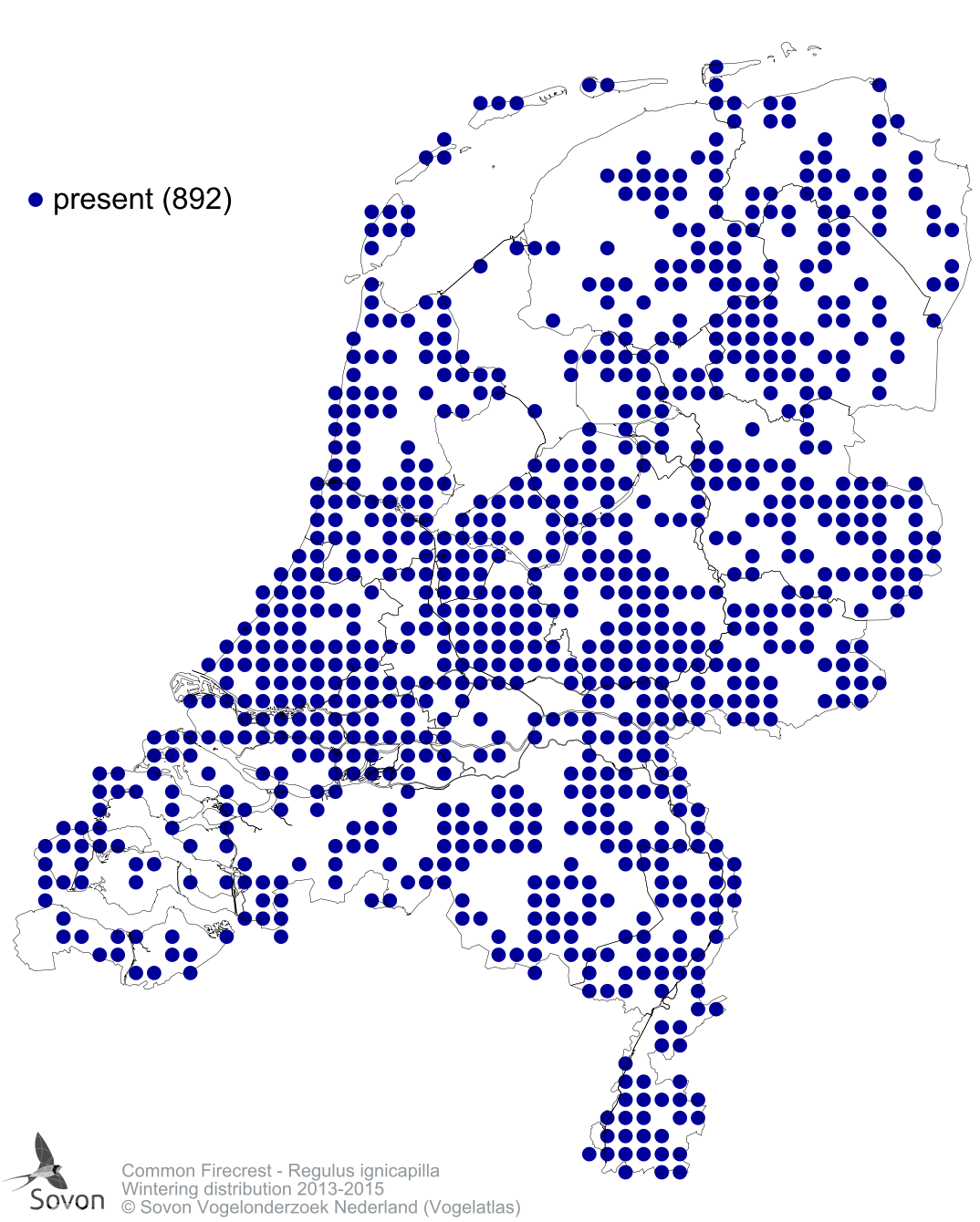 Numbers and distribution of breeding- and wintering birds in The Netherlands