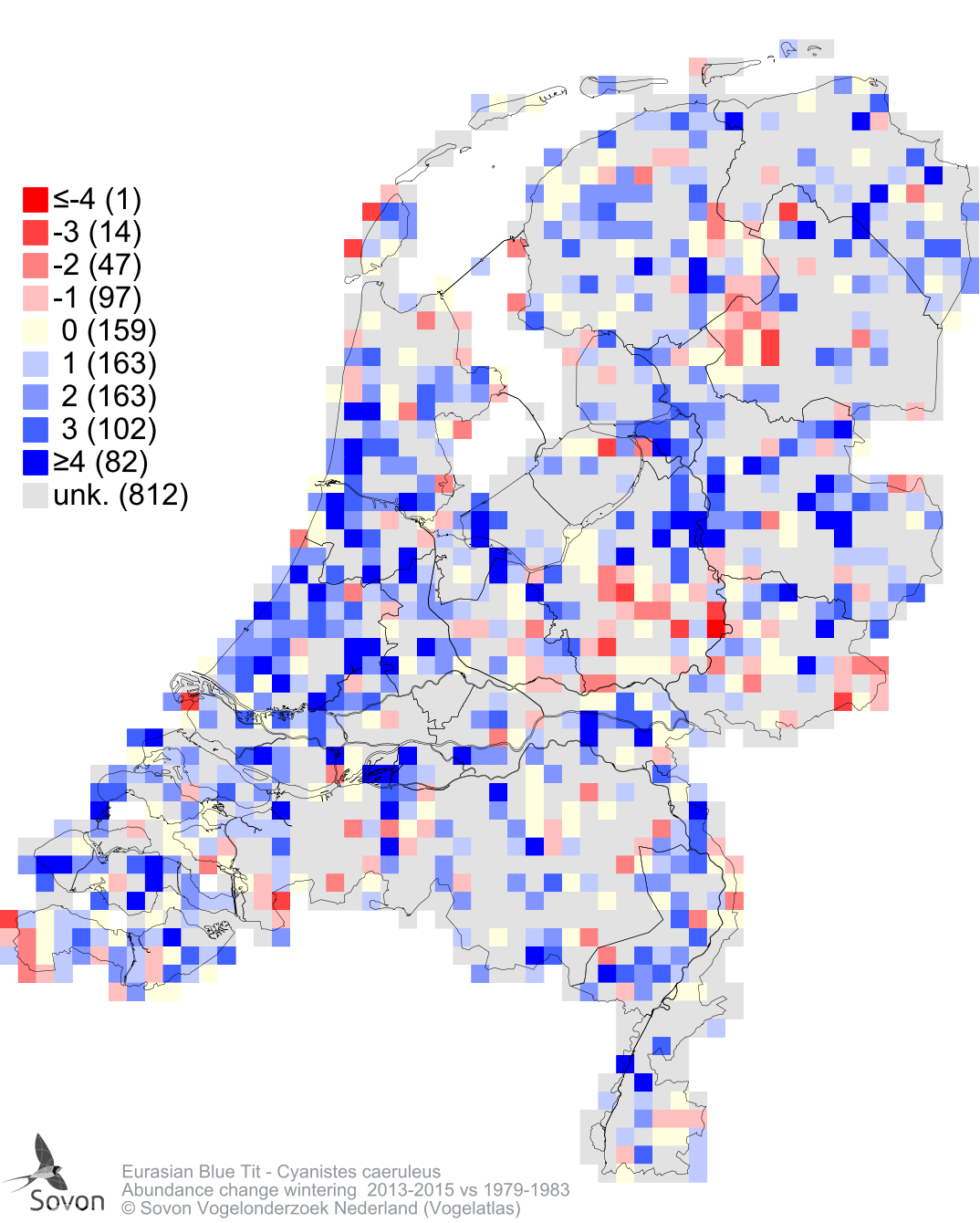 Abundance change wintering 2013-2015 vs 1979-1983