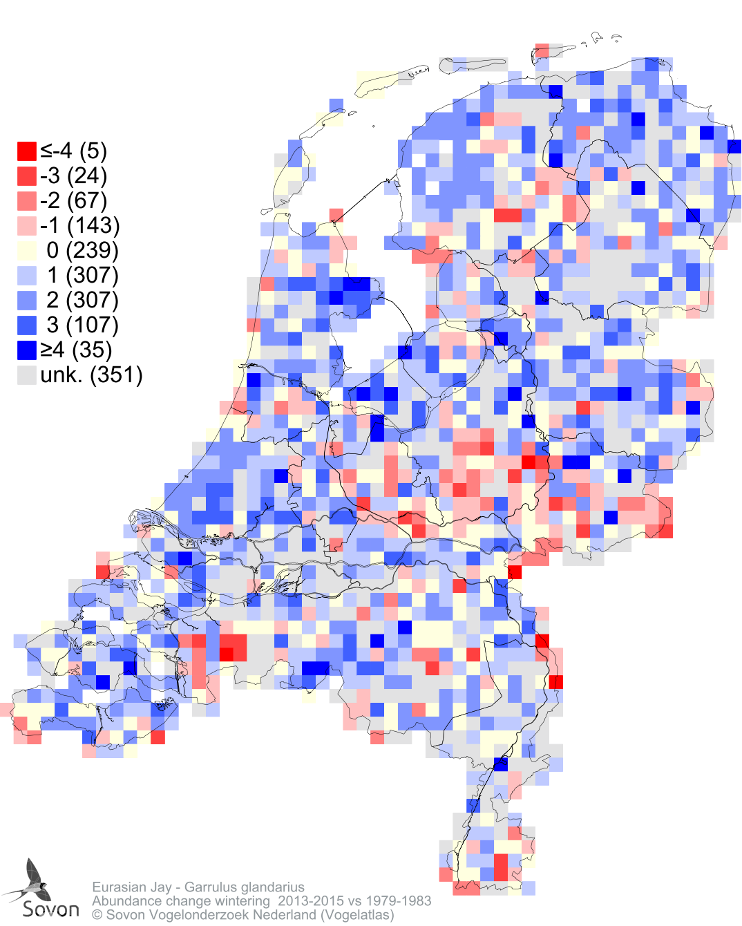 Abundance change wintering 2013-2015 vs 1979-1983