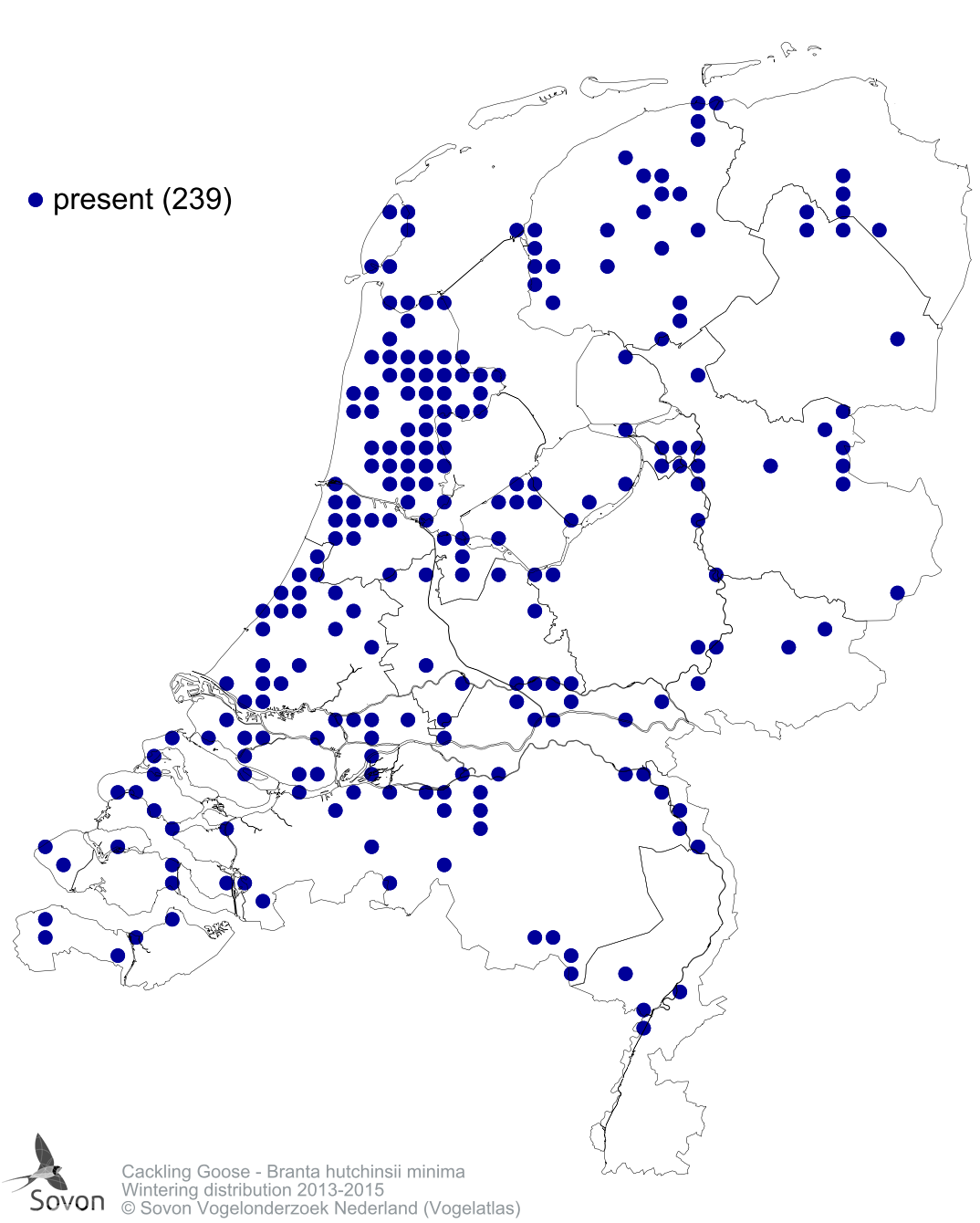 Numbers and distribution of breeding- and wintering birds in The Netherlands