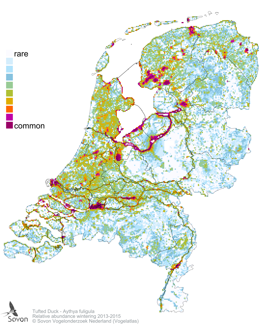 Numbers and distribution of breeding- and wintering birds in The Netherlands