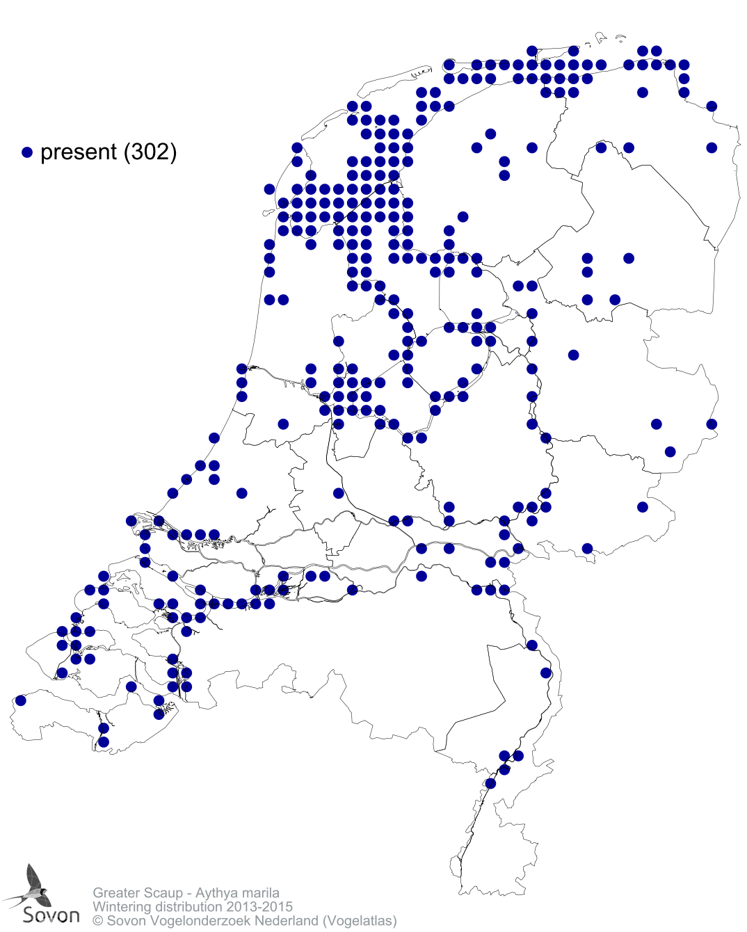 Numbers and distribution of breeding- and wintering birds in The Netherlands