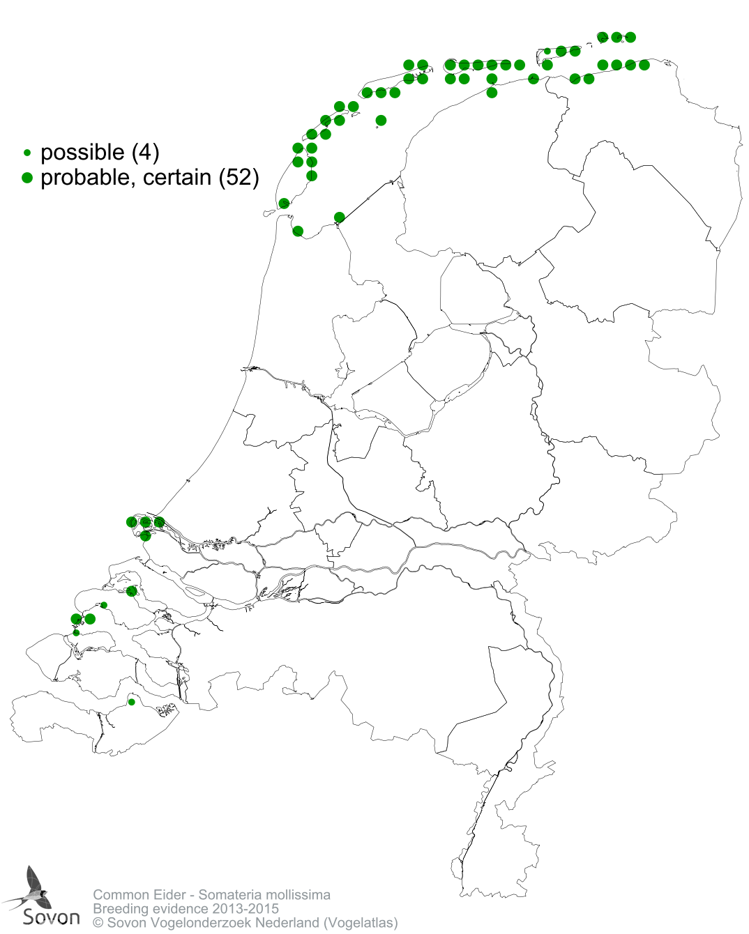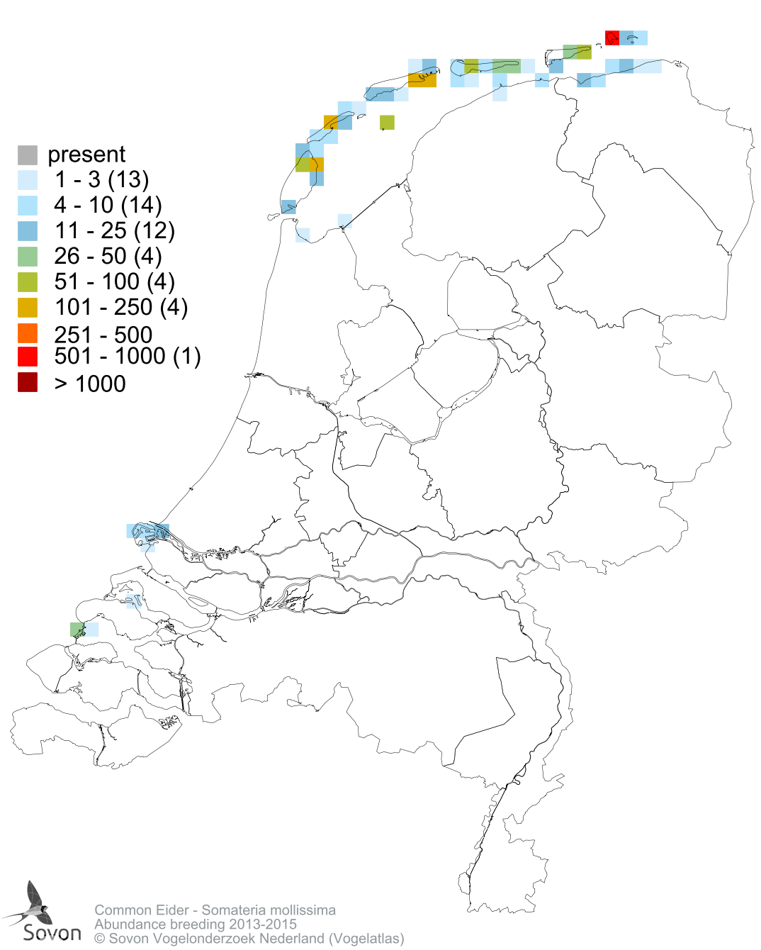 Numbers and distribution of breeding- and wintering birds in The Netherlands