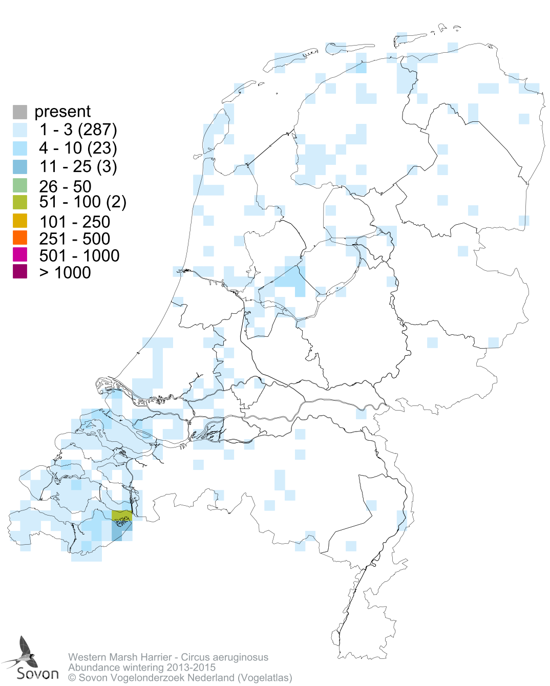Numbers and distribution of breeding- and wintering birds in The Netherlands