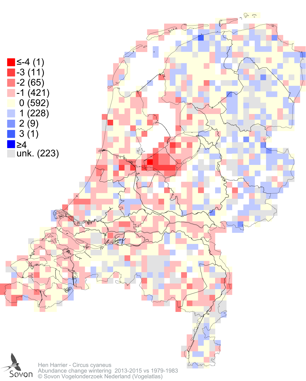 Abundance change wintering 2013-2015 vs 1979-1983