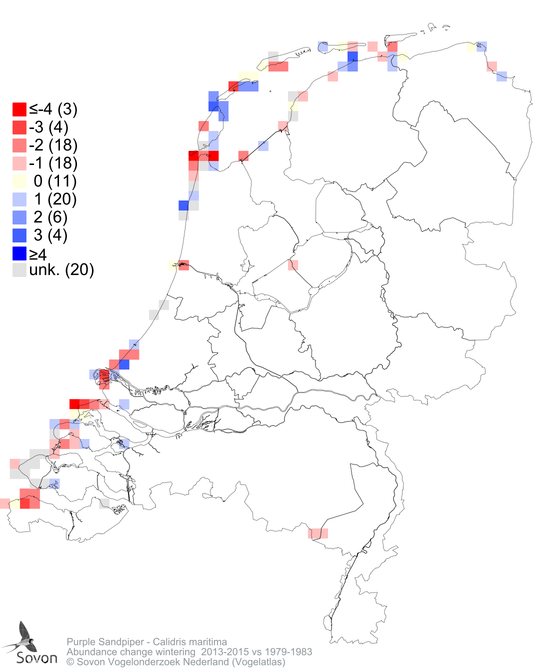 Abundance change wintering 2013-2015 vs 1979-1983