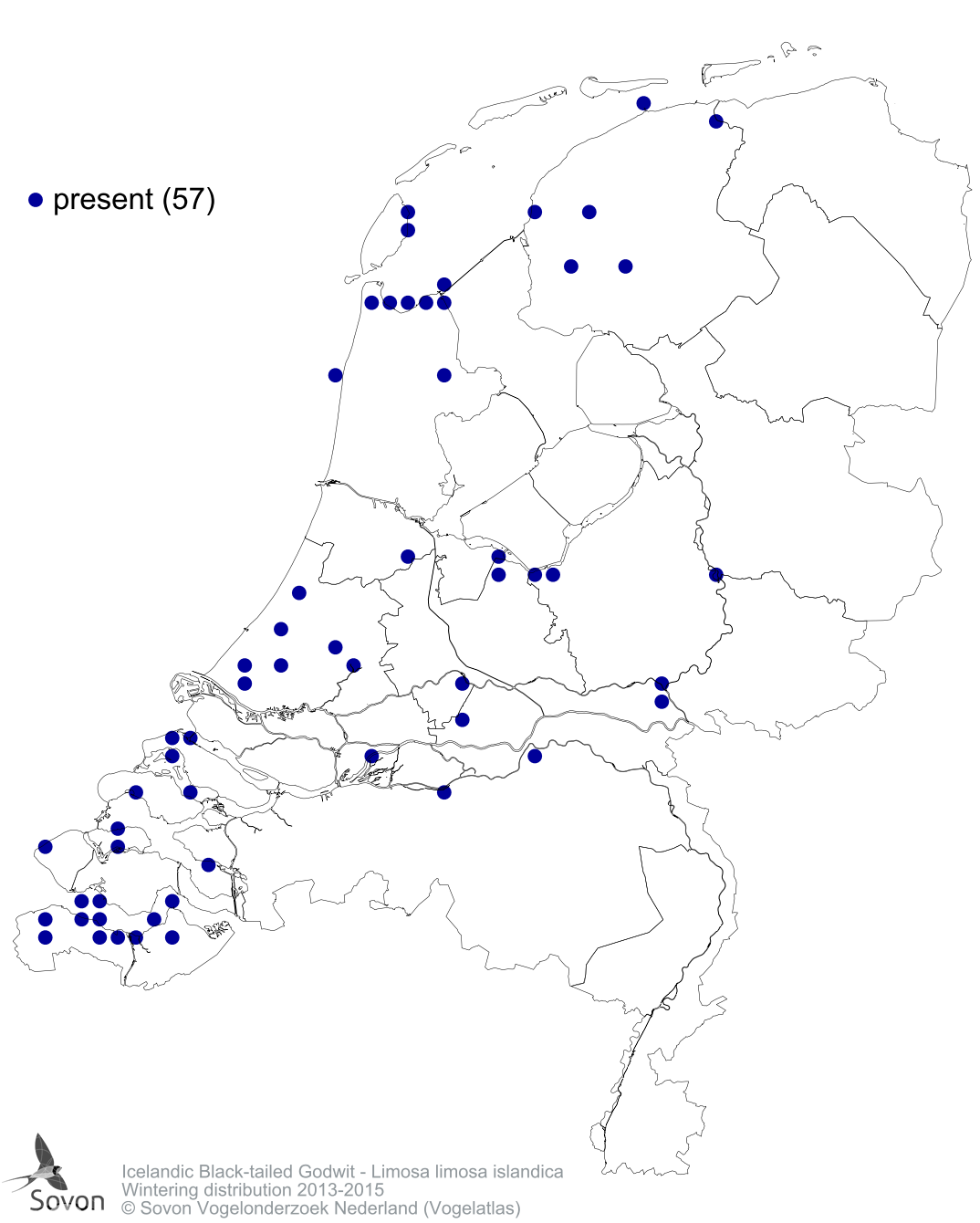 Numbers and distribution of breeding- and wintering birds in The Netherlands