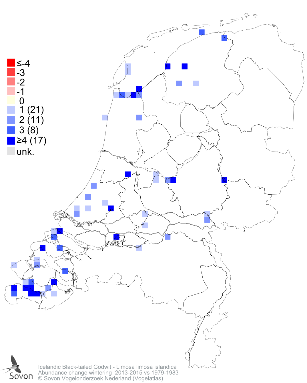 Abundance change wintering 2013-2015 vs 1979-1983