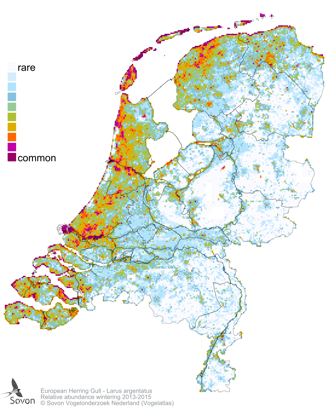 Numbers and distribution of breeding- and wintering birds in The Netherlands
