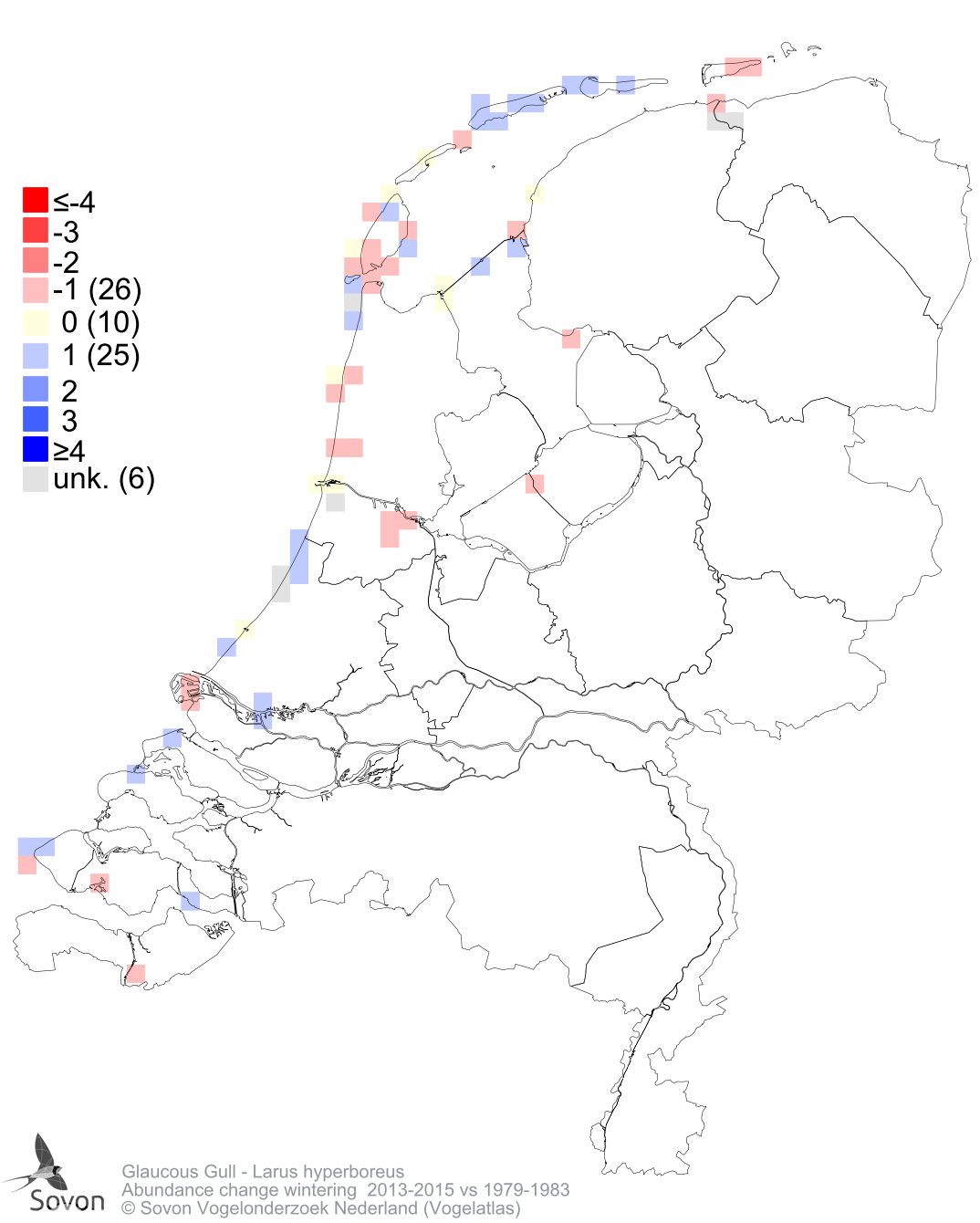 Abundance change wintering 2013-2015 vs 1979-1983