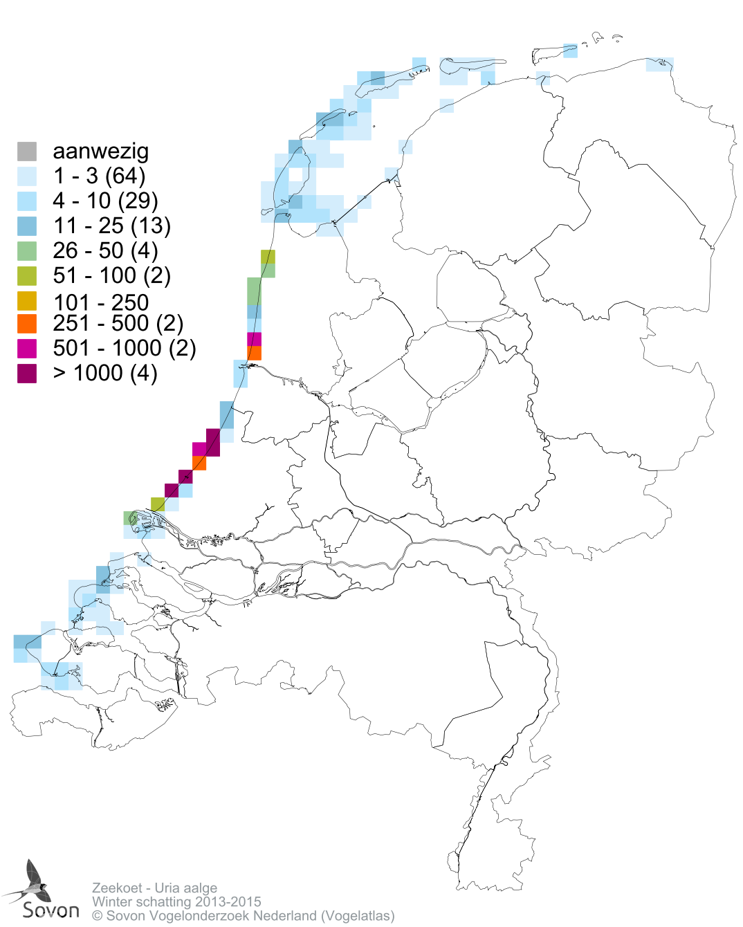aantal per atlasblok o.b.v. alle beschikbare data