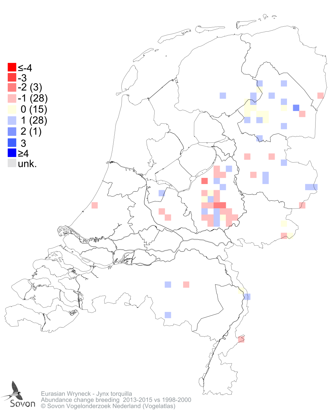 Abundance change breeding 2013-2015 vs 1998-2000