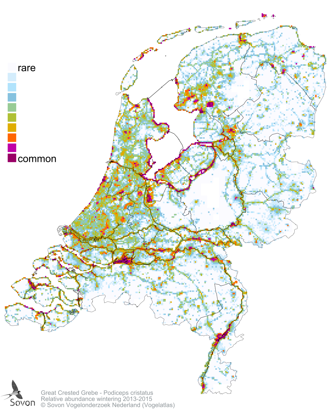 Numbers and distribution of breeding- and wintering birds in The Netherlands