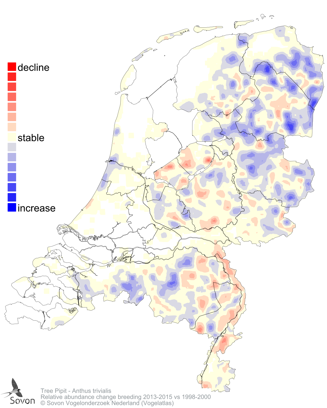 Relative abundance change breeding 2013-2015 vs 1998-2000