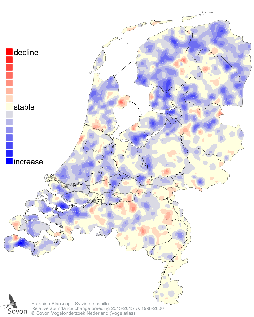 Relative abundance change breeding 2013-2015 vs 1998-2000