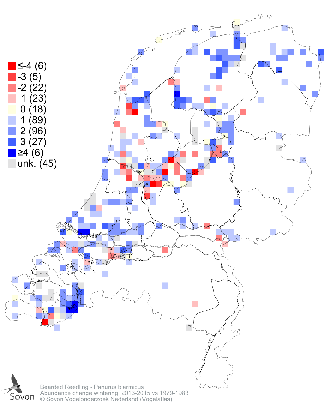 Abundance change wintering 2013-2015 vs 1979-1983