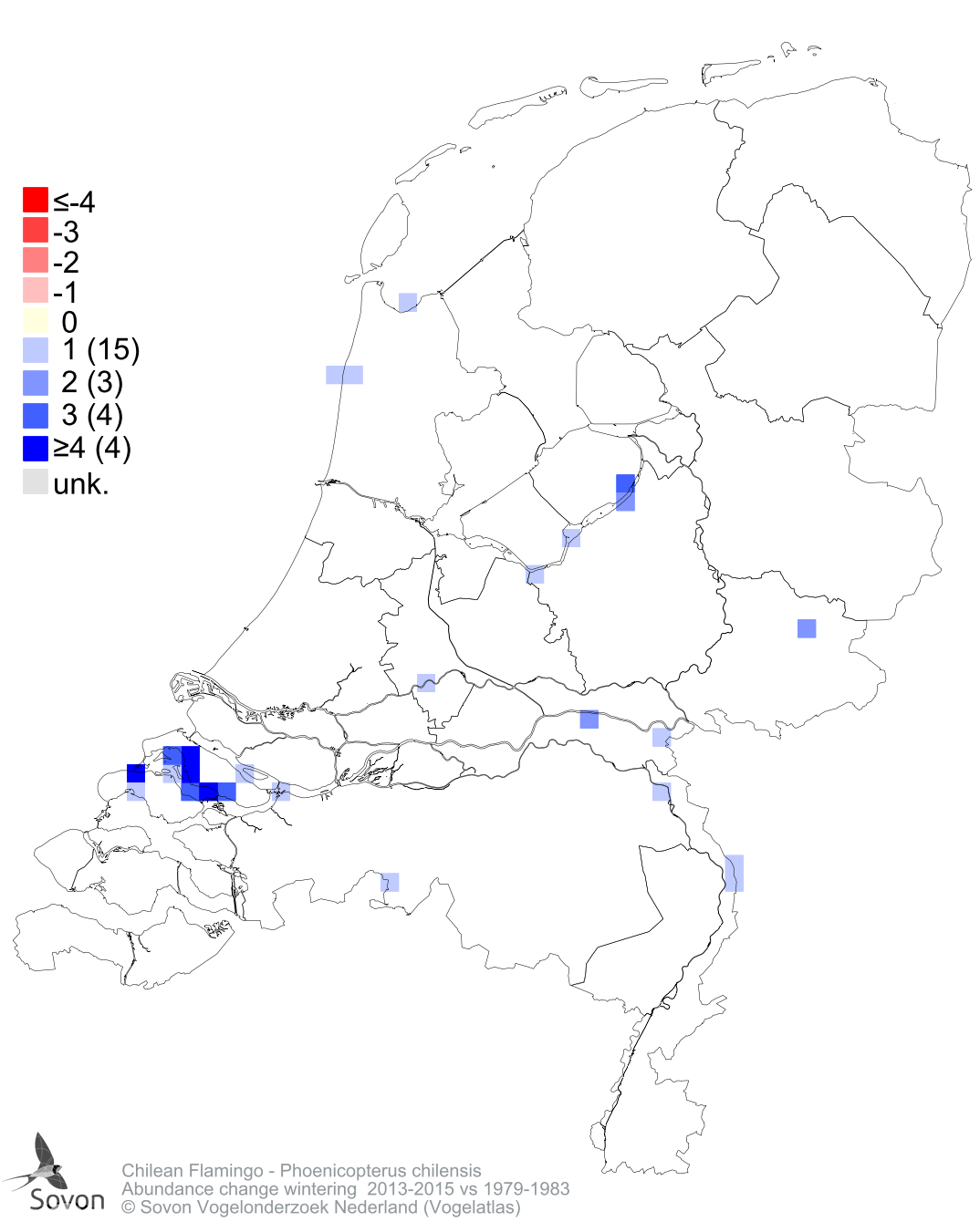 Abundance change wintering 2013-2015 vs 1979-1983