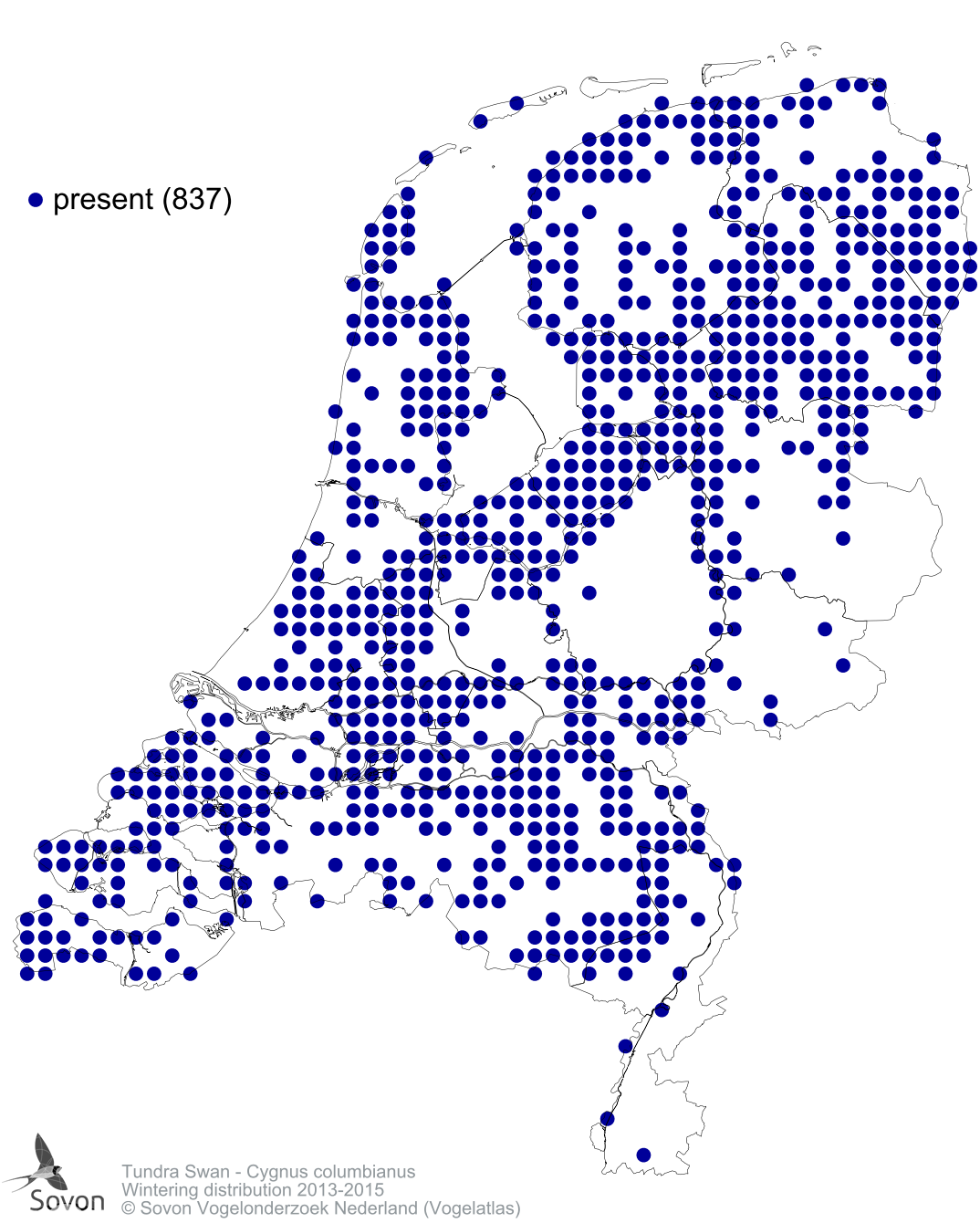 Numbers and distribution of breeding- and wintering birds in The Netherlands