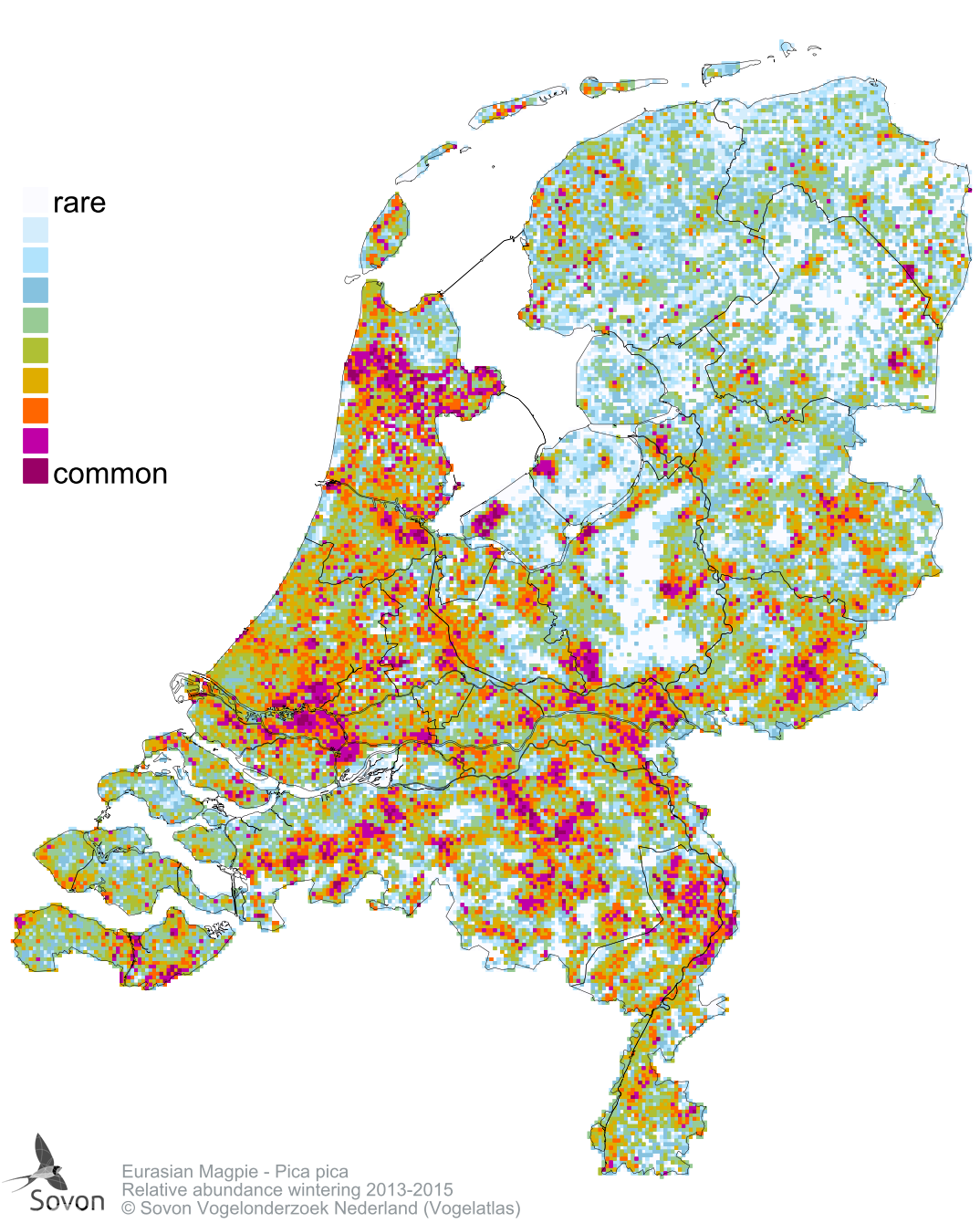 Numbers and distribution of breeding- and wintering birds in The Netherlands