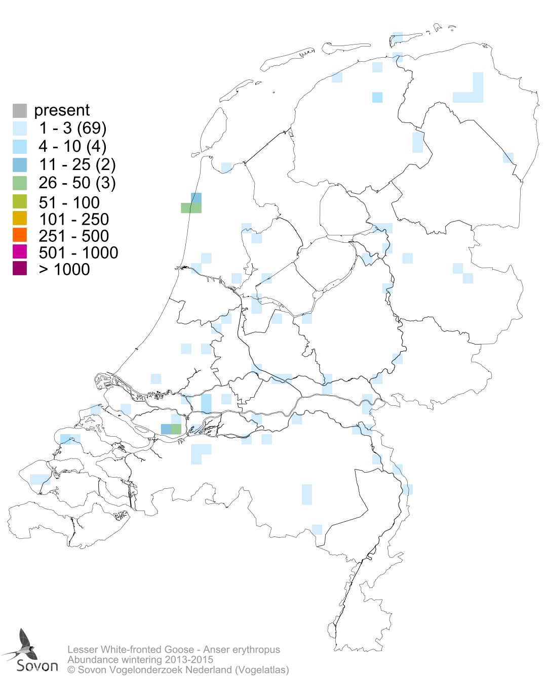 Numbers and distribution of breeding- and wintering birds in The Netherlands