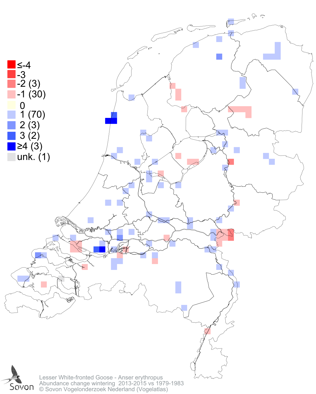 Abundance change wintering 2013-2015 vs 1979-1983