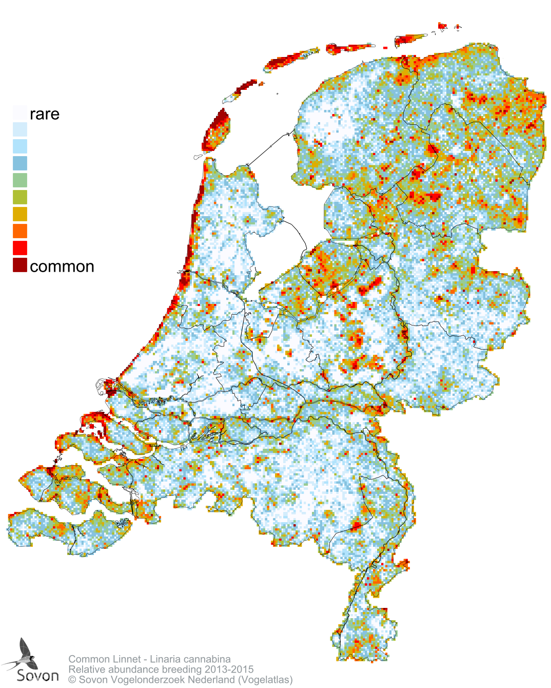 Numbers and distribution of breeding- and wintering birds in The Netherlands