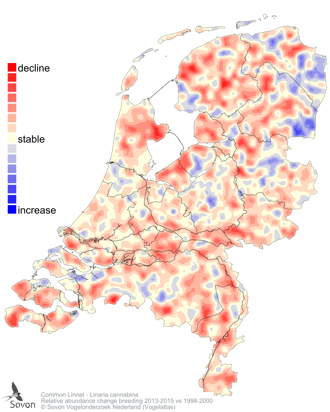 Relative abundance change breeding 2013-2015 vs 1998-2000