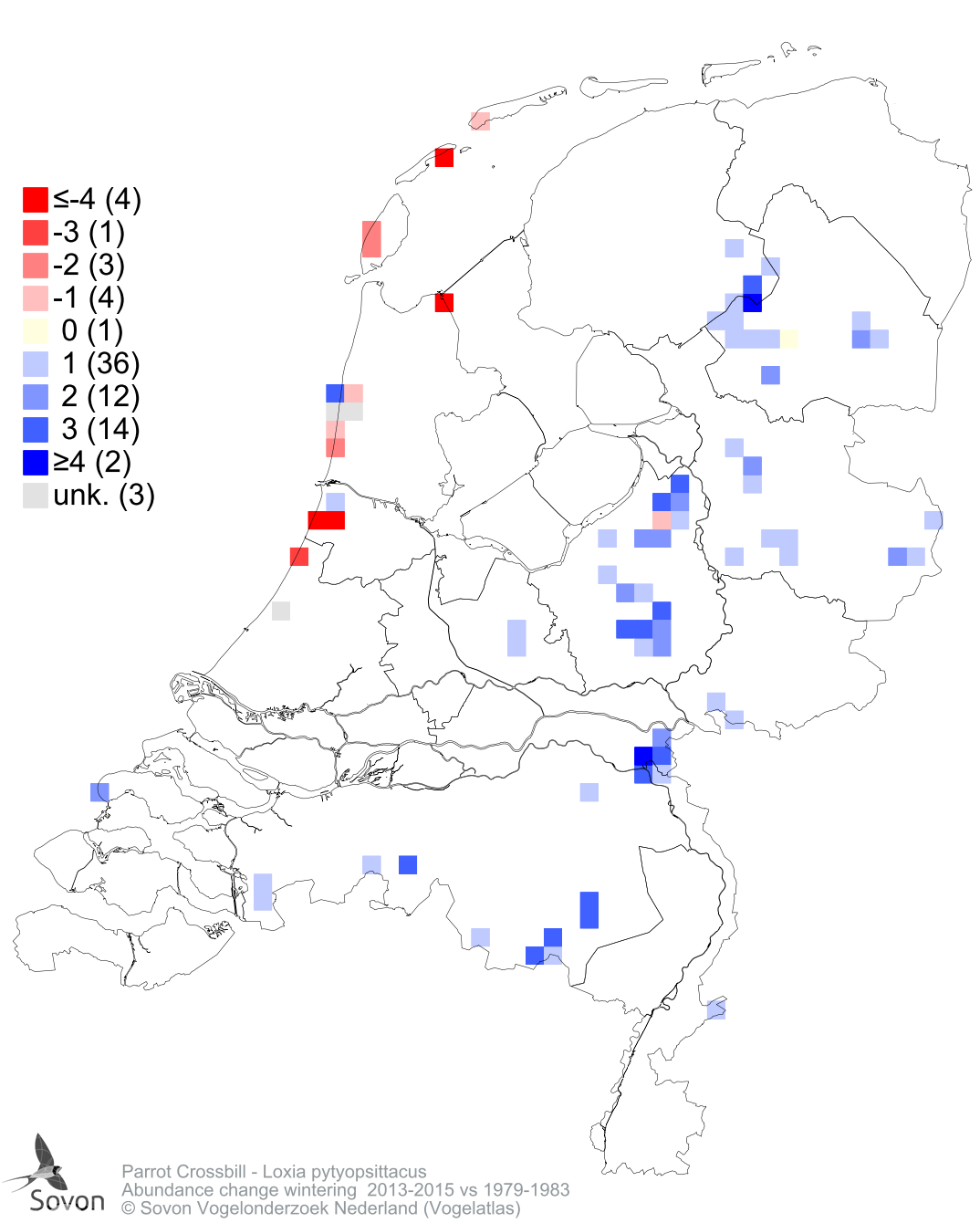Abundance change wintering 2013-2015 vs 1979-1983