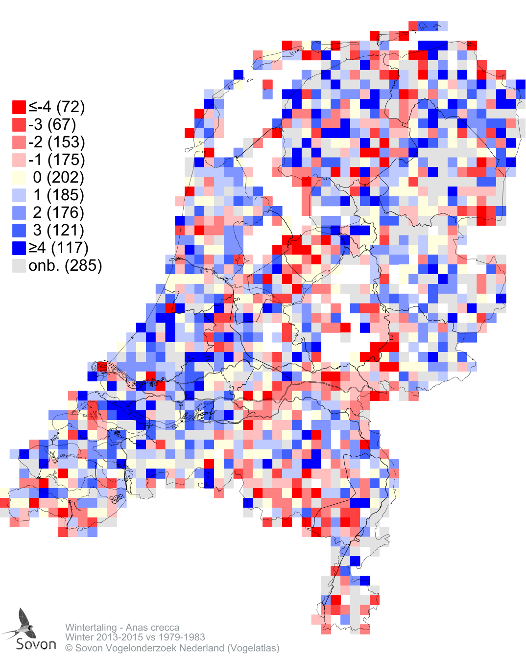 Abundance change wintering 2013-2015 vs 1979-1983