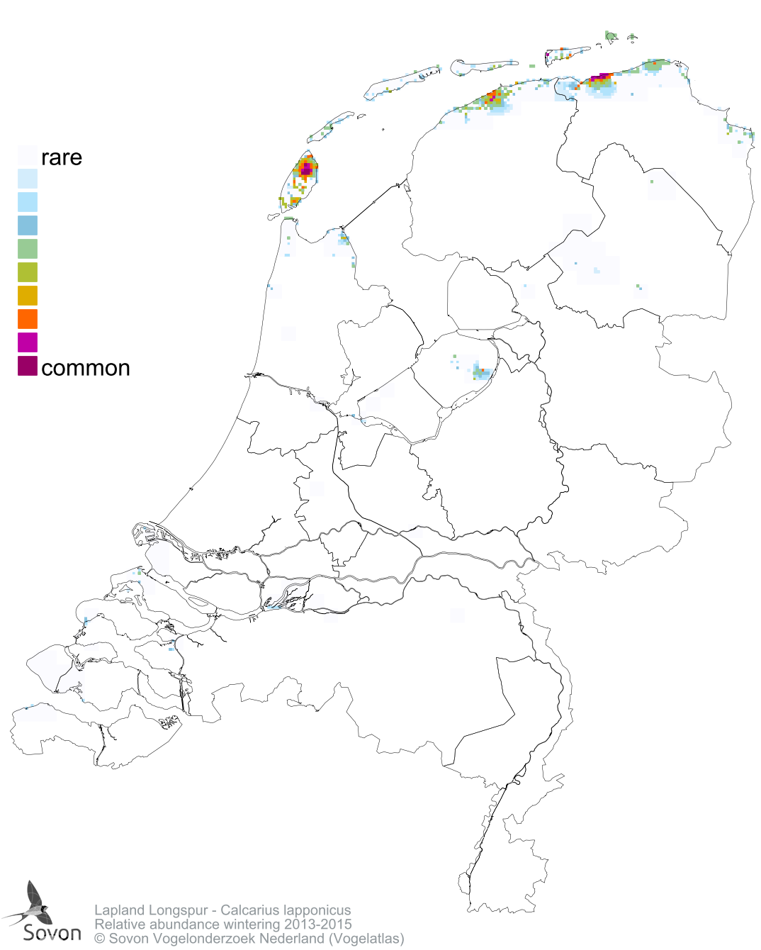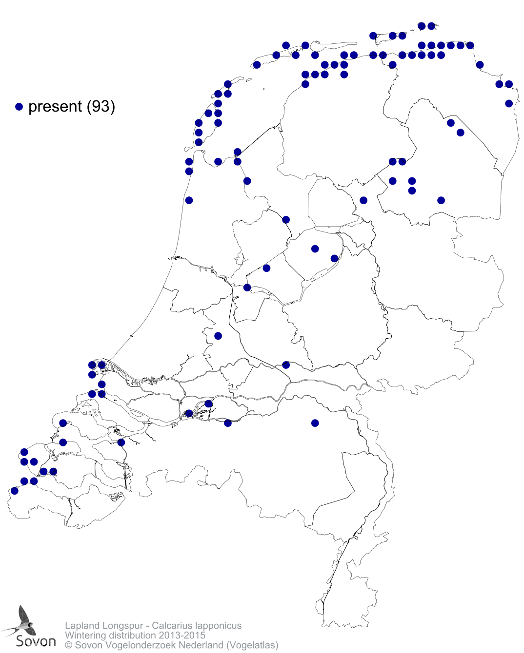 Numbers and distribution of breeding- and wintering birds in The Netherlands