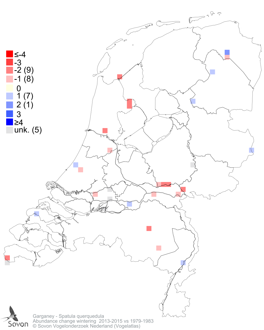 Abundance change wintering 2013-2015 vs 1979-1983