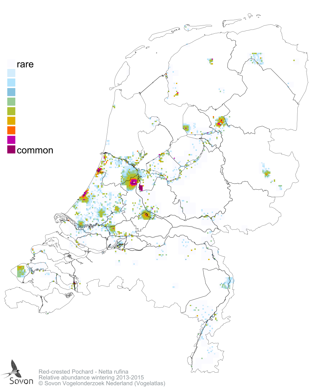 Numbers and distribution of breeding- and wintering birds in The Netherlands