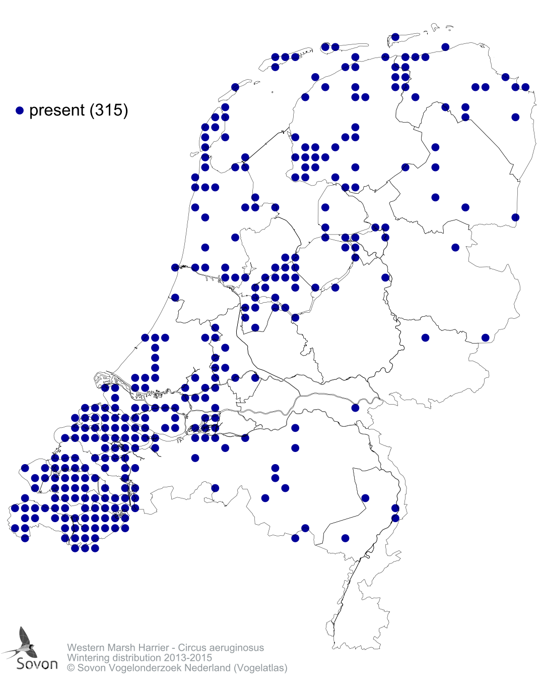 Numbers and distribution of breeding- and wintering birds in The Netherlands