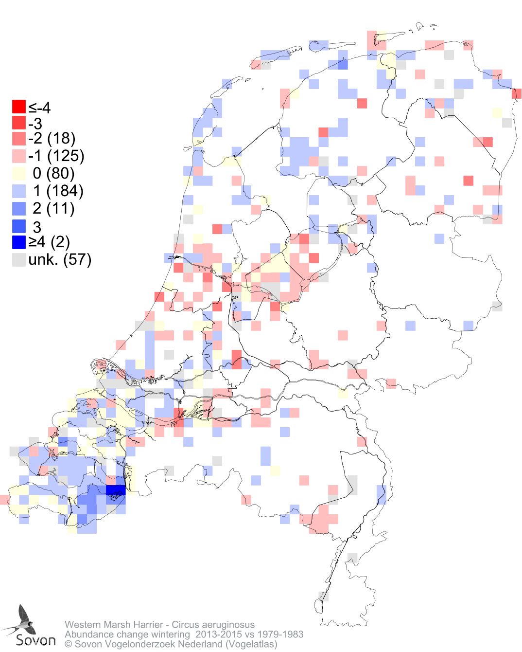 Abundance change wintering 2013-2015 vs 1979-1983