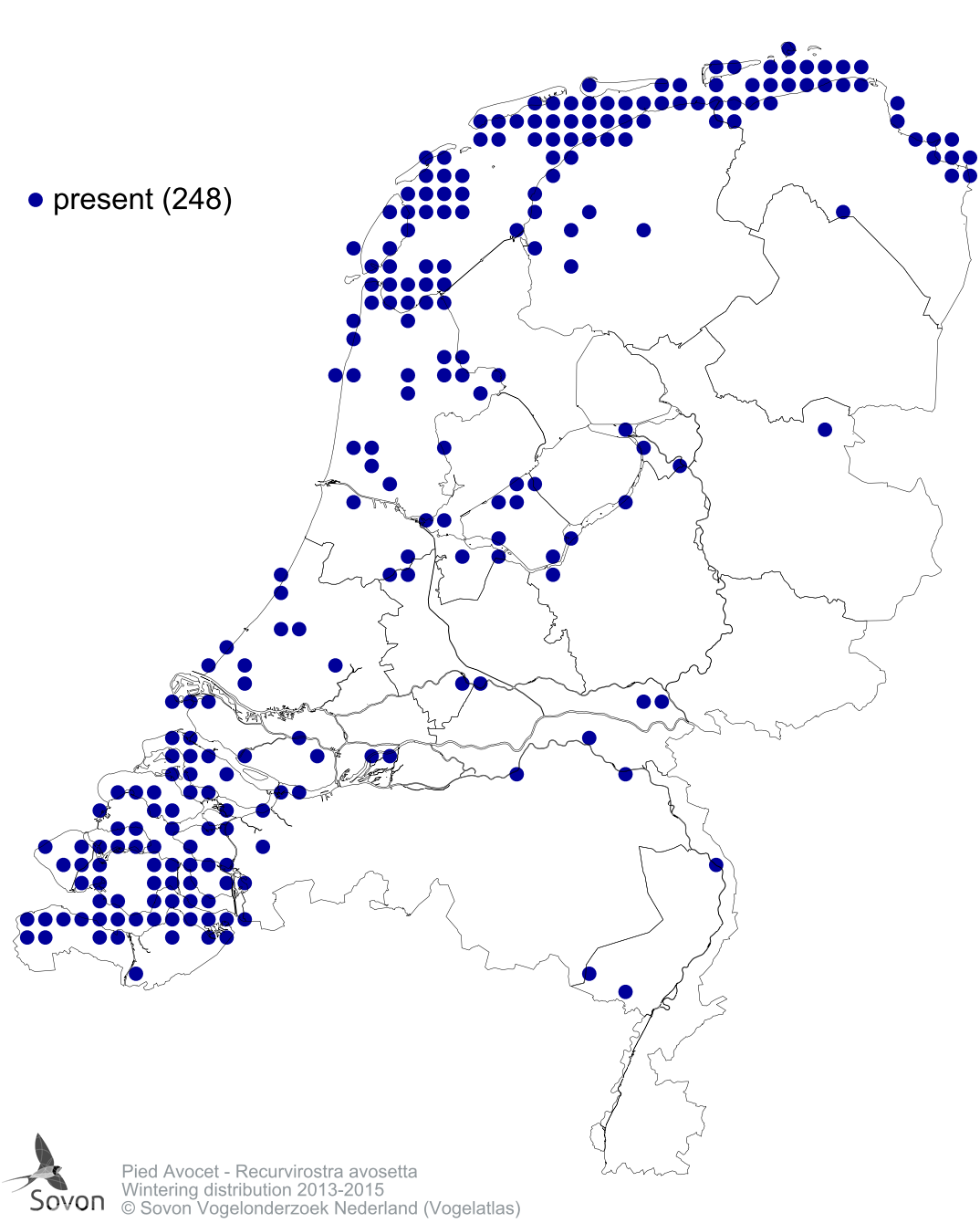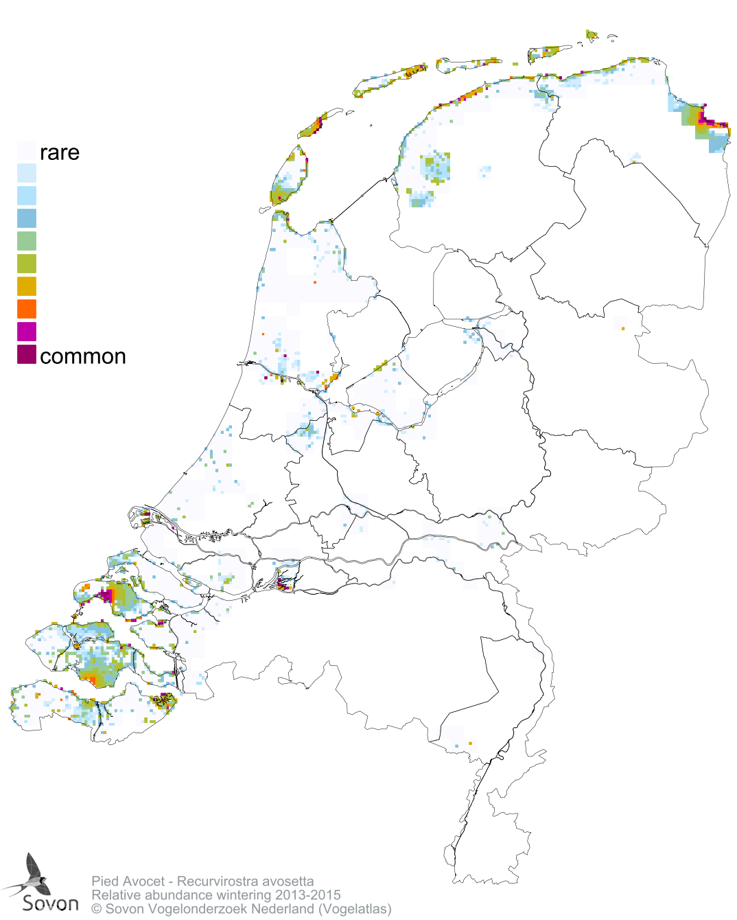 Numbers and distribution of breeding- and wintering birds in The Netherlands