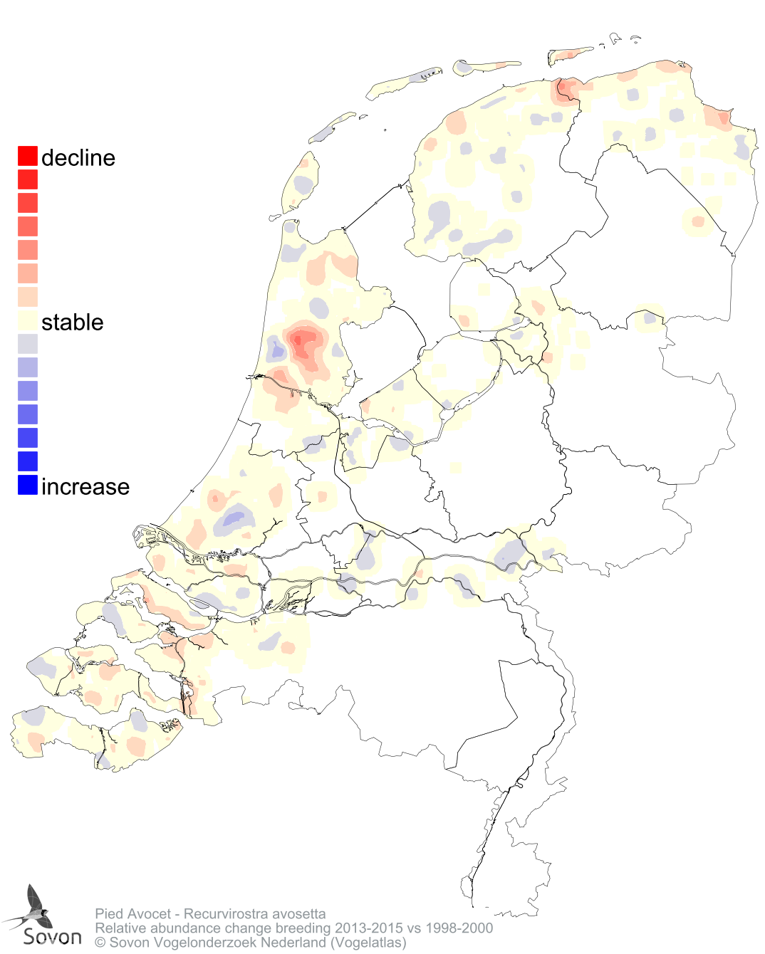 Relative abundance change breeding 2013-2015 vs 1998-2000