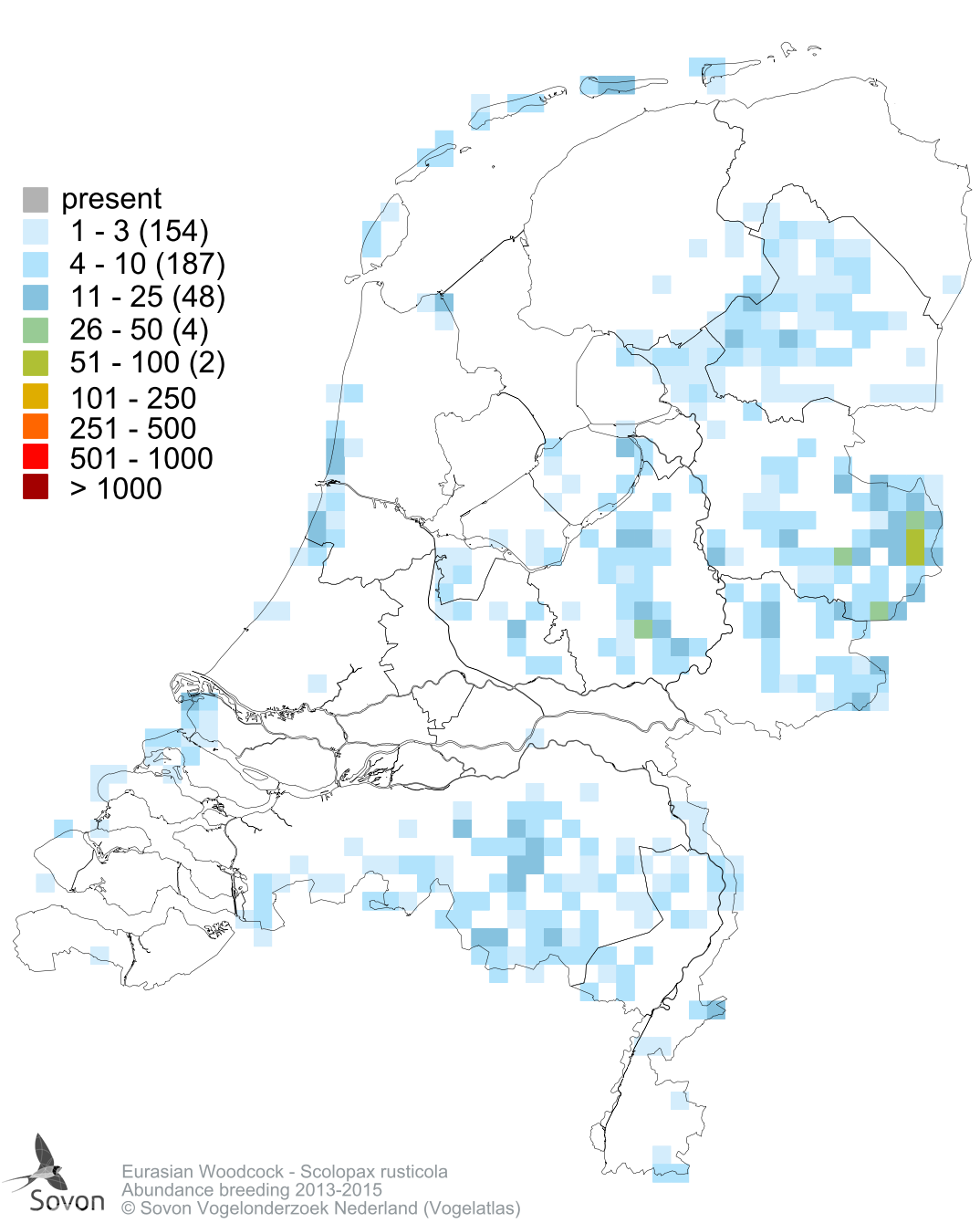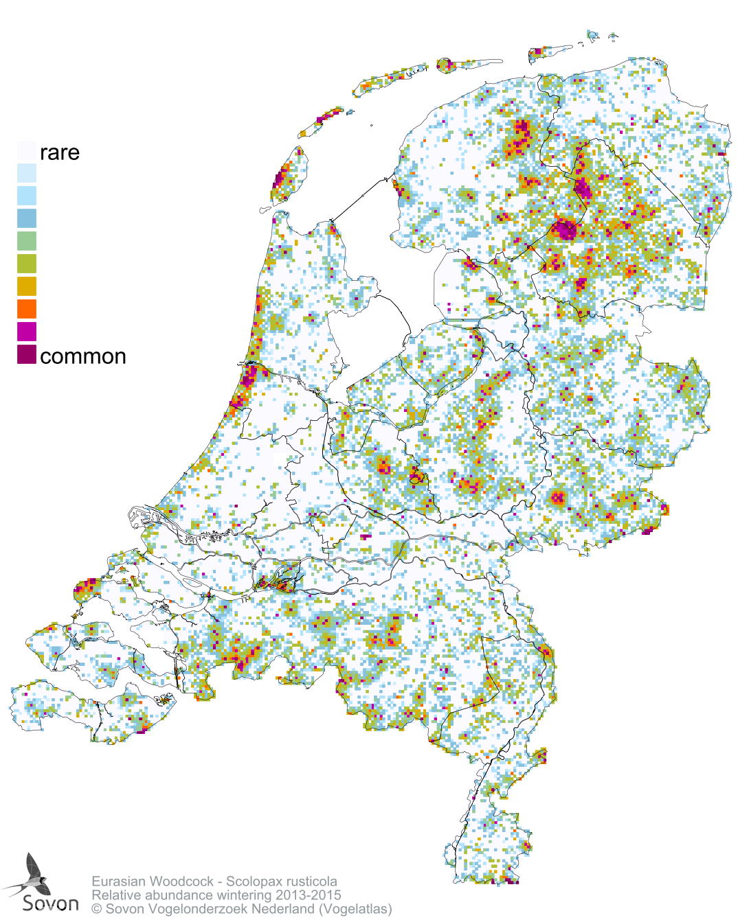 Numbers and distribution of breeding- and wintering birds in The Netherlands