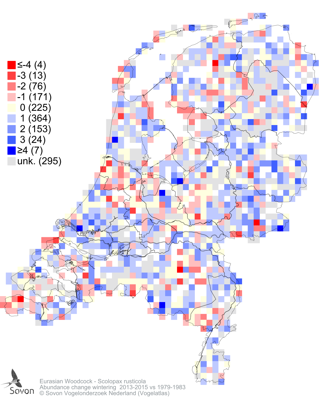Abundance change wintering 2013-2015 vs 1979-1983