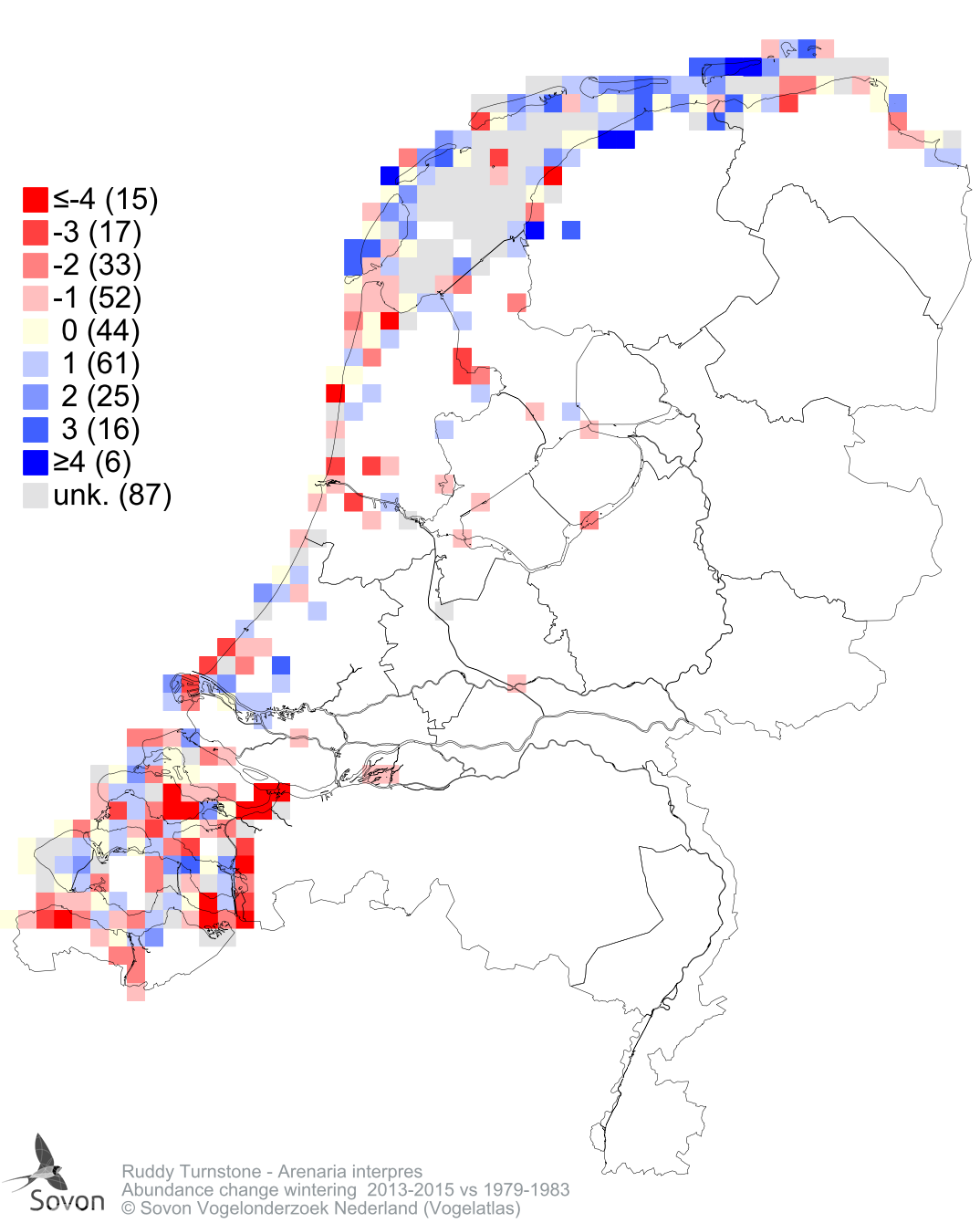Abundance change wintering 2013-2015 vs 1979-1983