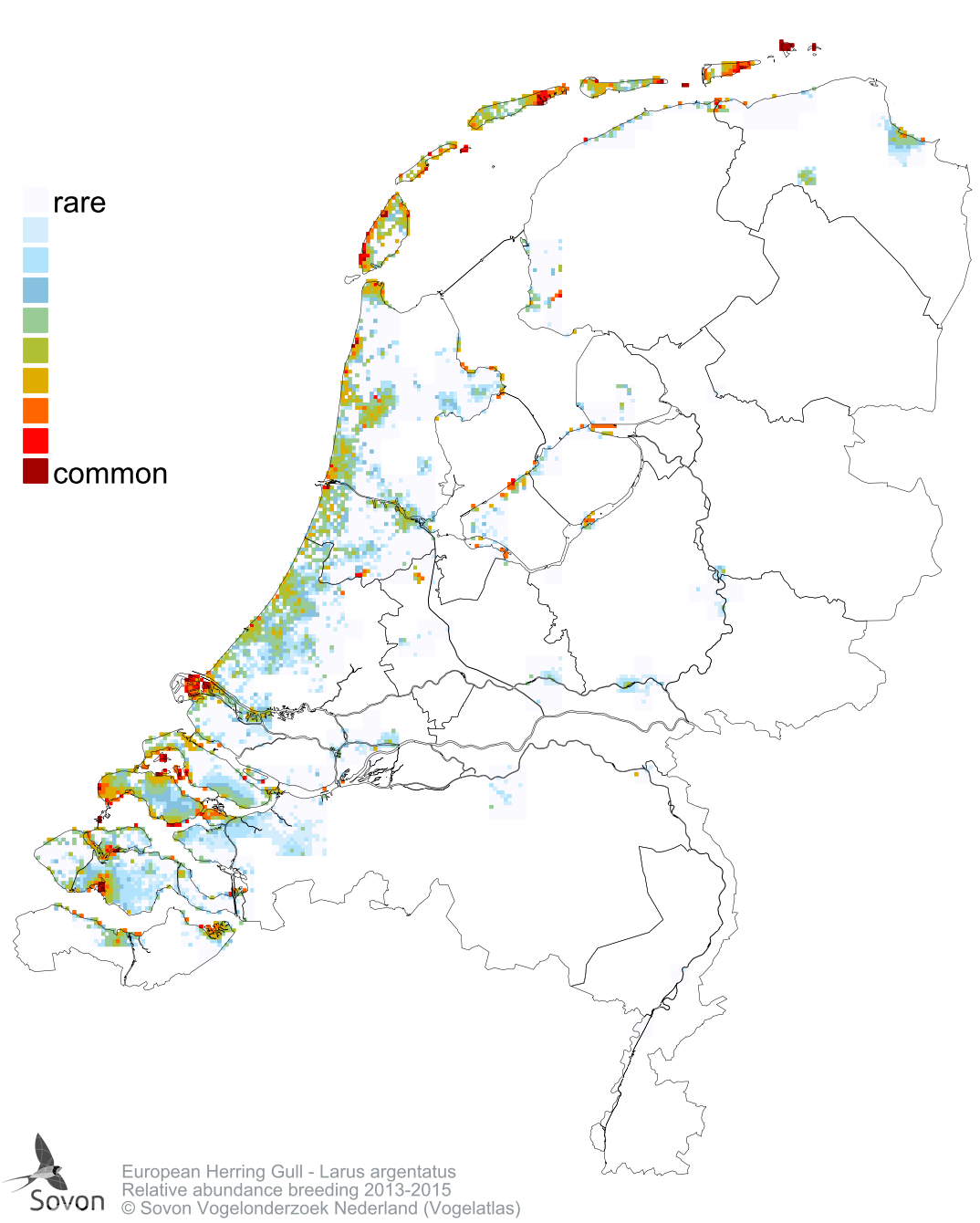 Numbers and distribution of breeding- and wintering birds in The Netherlands