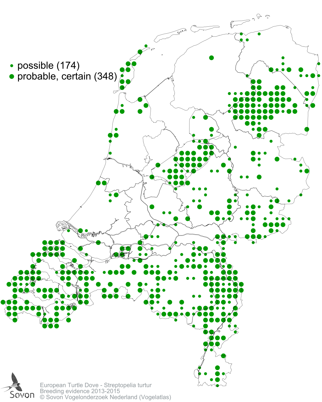 Numbers and distribution of breeding- and wintering birds in The Netherlands