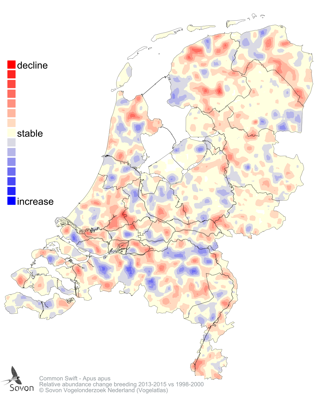 Relative abundance change breeding 2013-2015 vs 1998-2000