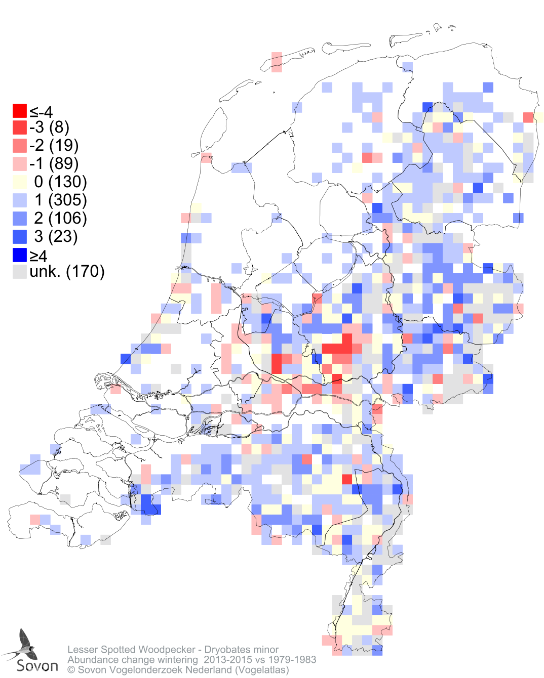 Abundance change wintering 2013-2015 vs 1979-1983